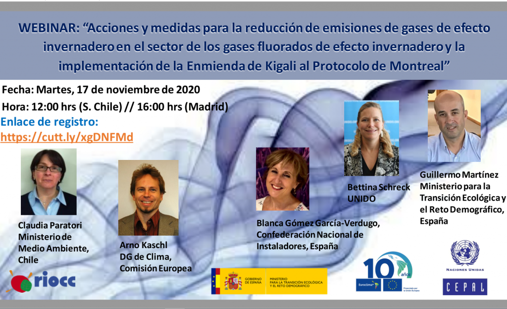 C N I intervendrá el 17 de noviembre en la conferencia de la Red Iberoamericana de oficinas de Cambio Climático en Chile. C N I explicará a los países de la región Iberoamericana el funcionamiento de la plataforma de formación en gases alternativos REAL Alternatives. El 25 de noviembre, CNI intervendrá en un evento online internacional con motivo de la 32ª Reunión de las Partes del Protocolo de Montreal.